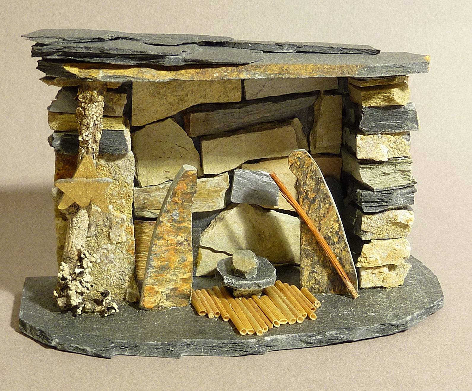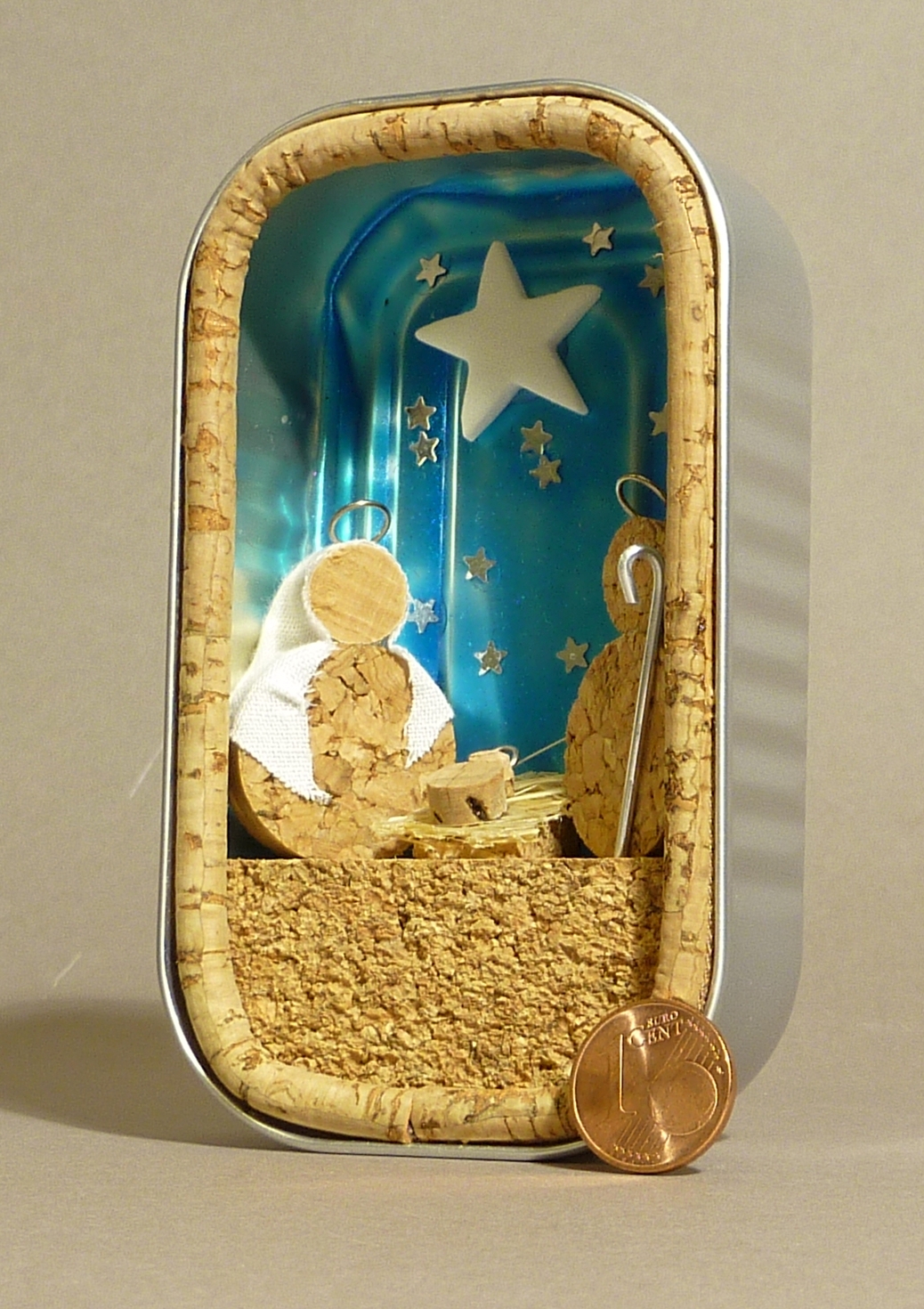 Die ausgestellten Miniaturkrippen sind ein (winziger!) Teil der Krippensammlung des bretonischen Pfarrers Joseph Galerne, der seit Jahren in der Weihnachtszeit eine vielbesuchte Krippenausstellung in seiner Pfarrkirche veranstaltet. Die Vielfalt der Formen und Materialien hat es dem Sammler angetan. Sie sind so vielfältig wie die Herkunftsländer: Stein, Holz, Stroh, Kork, Kiefernadeln, alle Arten von Nussschalen, Metall, Porzellan aber auch Kunststoff wurden verarbeitet.