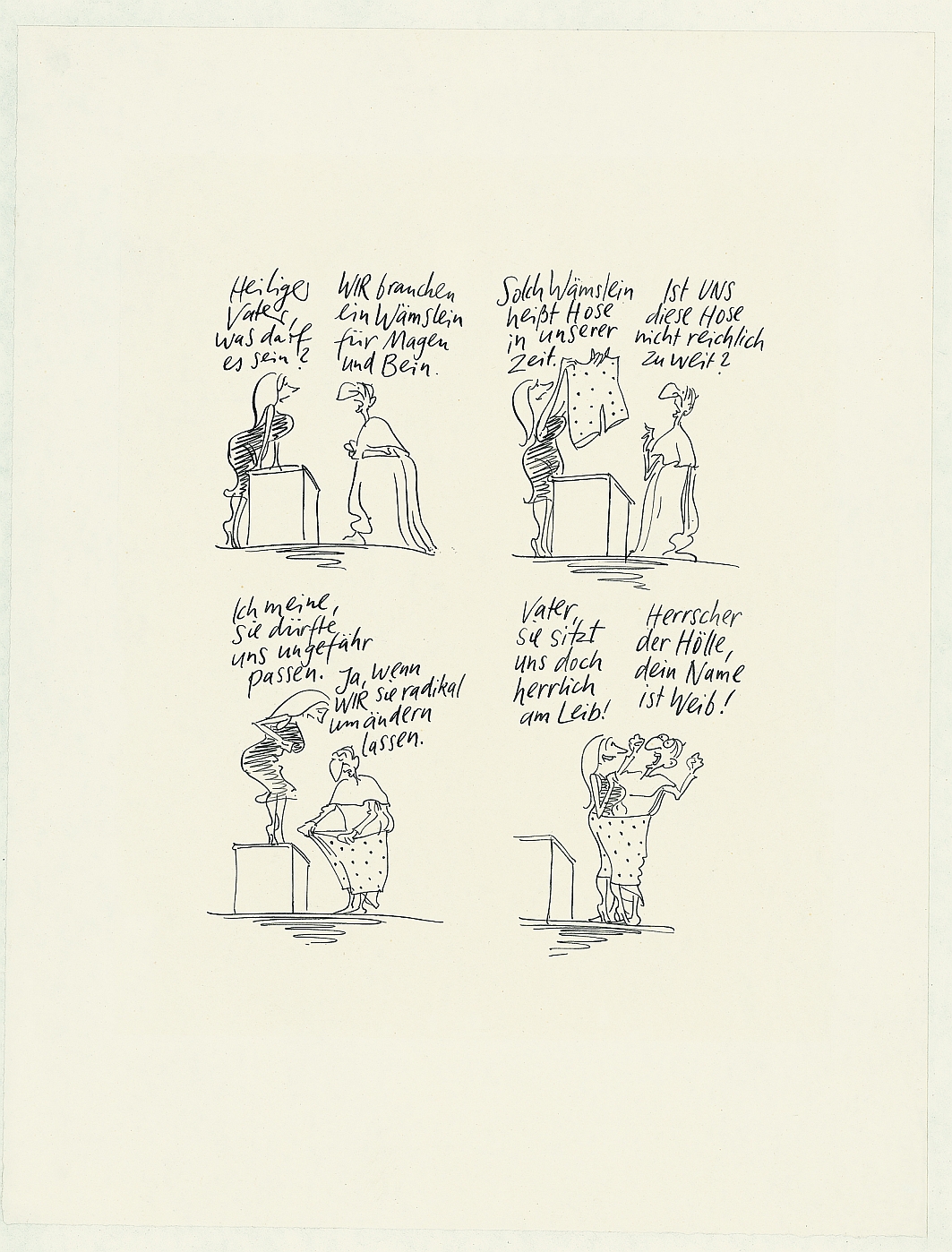 Friedrich Karl Waechter (1937-2005) gehört zu den wichtigsten und vielseitigsten deutschen Satire-Künstlern seit den 1960er Jahren. Er arbeitete für die Satiremagazine „pardon" und „Titanic" sowie für „DIE ZEIT". Neben seinem rein zeichnerischen Werk verfasste der vielfach preisgekrönte Künstler auch zahlreiche Kinderbücher und Cartoonbücher für Erwachsene sowie eine große Anzahl Theaterstücke.