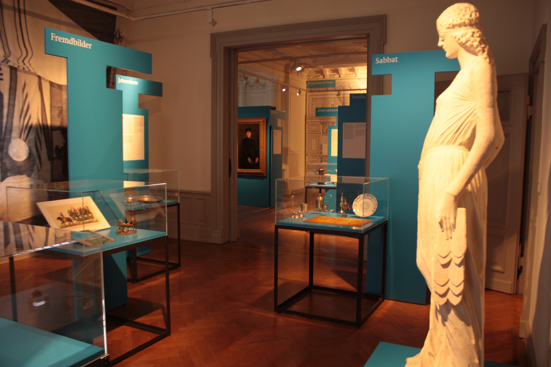 Auch der Ausstellungsort selbst, die Villa der Hopfenhändlerfamilie Dessauer, gewährt Einblick in ein Kapitel jüdischen Lebens in Bamberg. Im Hainviertel waren erfolgreiche Wirtschaftsbürger zuhause und es galt als „Zentrum des jüdischen Hopfenhandels“. Ein Themenbereich der Ausstellung ist auch deshalb Vorstellungen von „jüdischem Raum“ gewidmet. Was machte ein Stadtviertel „jüdisch“? Welche politischen, wirtschaftlichen und sozialen Gründe führten zu solchen Zuschreibungen?